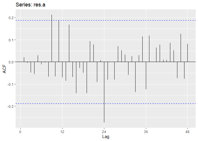 ## ar(x = res.a, aic = TRUE, order.max = NULL, method = c("yule-walker"))