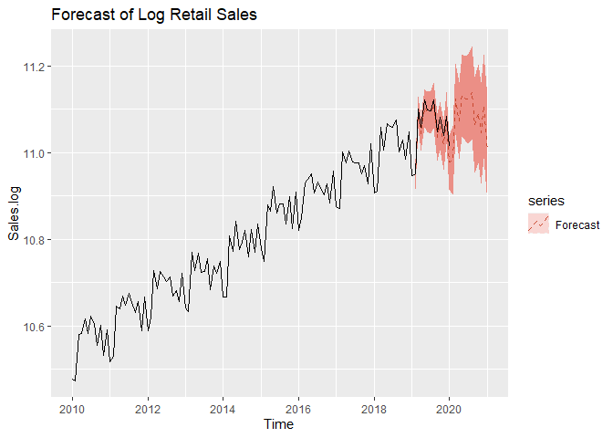 ggtitle('Forecast of Log Retail Sales') +